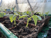 So even though it’s early in the year, it’s always worth planning ahead to letting a few of your crops go to seed. Here are some of my early sweetcorn and climbing french bean seedlings that I planted 10 days ago.